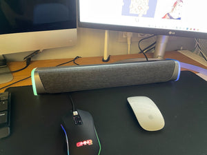Außerdem ist die Soundbar sehr platzsparend und kann unter Ihrem Monitor platziert werden. Mit 12W Spitzenleistung (6 W RMS) verbessert sie Ihre Spiele- oder Filmabende durch klare Klänge und wird durch die RGB-Beleuchtung unterstützt.