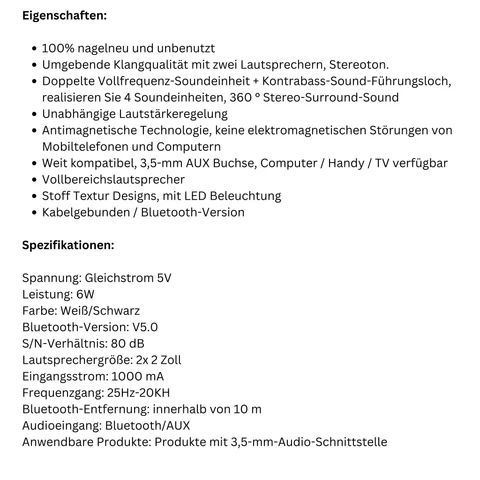 Die LED Soundbar bietet einen einzigartigen 3D Surround Stereo Soundeffekt, der ein immersives Klangerlebnis bietet. Der Klang ist auf Kinoniveau, dank der Verwendung von Hochleistungs-Doppellautsprechern und Doppelmembranen, die für einen lauteren Ton und eine feine Klangwiederherstellung sorgen.